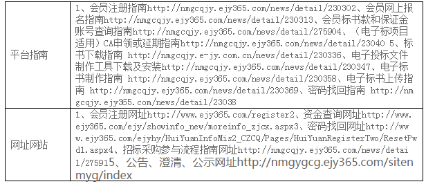 | 附件:設(shè)備清單 (2)投標(biāo)人資格要求 本次招標(biāo)要求投標(biāo)人須具備以下資質(zhì),人員、設(shè)備、資金等方面具有相應(yīng)的能力: ①須在工商行政管理部門辦理登記注冊(cè)(具有有效營(yíng)業(yè)執(zhí)照); ②所供貨物均須提供產(chǎn)品合格證,電器類產(chǎn)品須提供“3C”認(rèn)證證書。 ③所有資質(zhì)文件、報(bào)告等真實(shí)有效,不得出現(xiàn)偽造、涂改、借用等情形。 ④履行合同所必需的設(shè)備和專業(yè)技術(shù)能力及專業(yè)技術(shù)人員; ⑤投標(biāo)設(shè)備必須滿足招標(biāo)人的設(shè)備參數(shù)要求,需要提供投標(biāo)設(shè)備型號(hào)品牌、各模塊性能參數(shù)、尺寸等材料和設(shè)備正面、側(cè)面、背面、平視俯視等角度彩照; ⑥具有良好的銀行資信、商業(yè)信譽(yù)和履行合同的能力,提供財(cái)務(wù)報(bào)告或銀行資信證明; ⑦在最近三年內(nèi)沒(méi)有騙取中標(biāo)和嚴(yán)重違約等問(wèn)題,可提供承諾書或法人在“國(guó)家企業(yè)信用信息公示系統(tǒng)”和“中國(guó)裁判文書”網(wǎng)無(wú)不良記錄的打印頁(yè); ⑧單位負(fù)責(zé)人為同一人或者存在直接控股、管理關(guān)系的不同供應(yīng)商,不得參加同一合同項(xiàng)下的采購(gòu)活動(dòng);與采購(gòu)人存在利害關(guān)系可能影響采購(gòu)公正性的法人、其他組織,不得參加競(jìng)標(biāo); ⑨不接受聯(lián)合體 (3)招標(biāo)文件的獲取 凡有意參加本項(xiàng)目的潛在投標(biāo)人,請(qǐng)于2020年8月26日9時(shí)至2020年9月2日17時(shí) (北京時(shí)間,下同),登錄內(nèi)蒙古產(chǎn)權(quán)交易市場(chǎng)網(wǎng)站“http://www.nmcqjy.com/”進(jìn)行會(huì)員注冊(cè)及辦理CA, CA申領(lǐng)方法及平臺(tái)操作指南請(qǐng)登錄(http://www.ejy365.com/newlogin)進(jìn)行學(xué)習(xí),在網(wǎng)上購(gòu)買并下載招標(biāo)文件。 提示:CA僅用于投標(biāo)文件的加密和解密,CA申領(lǐng)在供應(yīng)商系統(tǒng)中即可完成,建議在開(kāi)標(biāo)時(shí)間前10天以上制作投標(biāo)文件,請(qǐng)注意在領(lǐng)購(gòu)招標(biāo)文件時(shí)間內(nèi)下載招標(biāo)文件,否則將無(wú)法參與本項(xiàng)目,CA售價(jià)250元/個(gè),售后不退。 本次項(xiàng)目的澄清/修改/變更/重新招標(biāo)公告會(huì)通過(guò)網(wǎng)站發(fā)布,請(qǐng)參加的投標(biāo)人及時(shí)登錄系統(tǒng)查看。 招標(biāo)文件(僅支持E交易下載領(lǐng)?。┦蹆r(jià)500元/標(biāo)段,售后不退。 賬戶名:內(nèi)蒙古產(chǎn)權(quán)交易中心有限責(zé)任公司 開(kāi)戶行:中國(guó)銀行內(nèi)蒙古自治區(qū)分行營(yíng)業(yè)部 行號(hào):104191014056 賬號(hào):以下載標(biāo)書系統(tǒng)彈出通知信息為準(zhǔn) 串標(biāo)行為認(rèn)定:標(biāo)書款和保證金的子帳號(hào)為隨機(jī)生成,參加同一項(xiàng)目的多家供應(yīng)商的標(biāo)書款或保證金匯入同一子賬號(hào),視為串標(biāo)行為。 (4)投標(biāo)文件的遞交 投標(biāo)文件遞交的截止時(shí)間(投標(biāo)截止時(shí)間,下同)為2020年9月9日9時(shí)30分,投標(biāo)人應(yīng)在截止時(shí)間前通過(guò)內(nèi)蒙古產(chǎn)權(quán)交易中心電子(E交易平臺(tái))招標(biāo)投標(biāo)交易平臺(tái)遞交電子投標(biāo)文件。 注:逾期送達(dá)的投標(biāo)文件,電子招標(biāo)投標(biāo)交易平臺(tái)將予以拒收。采用遠(yuǎn)程電子開(kāi)標(biāo),投標(biāo)人無(wú)須到達(dá)開(kāi)標(biāo)現(xiàn)場(chǎng),可遠(yuǎn)程使用CA解密。 (5)付款方式 協(xié)議簽訂之日起5個(gè)工作日內(nèi),我方向供應(yīng)商支付貨款總金額的45%作為定金,并于到貨5個(gè)工作日內(nèi),供應(yīng)商向我方提供全額形式增值稅普通發(fā)票,再付50%貨款,剩余5%貨款作為質(zhì)保金,如無(wú)質(zhì)量問(wèn)題1年后付清。 3.聯(lián)系方式 采購(gòu)人名稱:內(nèi)蒙古烏蘭美健康服務(wù)集團(tuán)有限公司 聯(lián) 系 人:姚佳秀 聯(lián)系電話:17604742599 內(nèi)蒙古產(chǎn)權(quán)交易中心有限責(zé)任公司 地址:內(nèi)蒙古呼和浩特市賽罕區(qū)阿吉泰路3號(hào) 聯(lián) 系 人: 楊艷 聯(lián)系電話: 18586095937 郵箱:nmcqcg@163.com 技術(shù)支持電話:0471-3473040(報(bào)名、標(biāo)書下載上傳等)/0471-3473016(CA申請(qǐng)) |