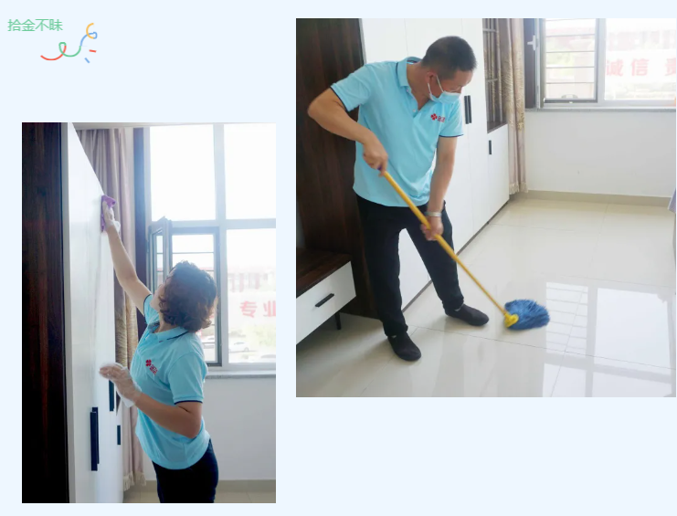 △烏蘭美康養(yǎng)院的生活助理團(tuán)隊正在為李恩國爺爺打掃房間衛(wèi)生