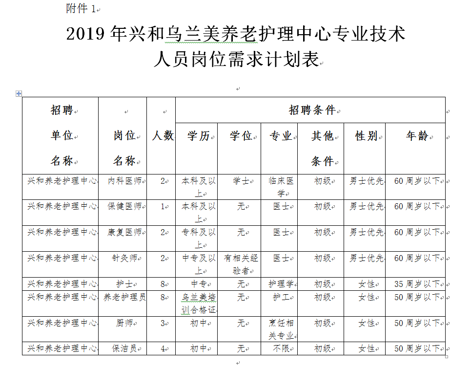 【誠聘英才】烏蘭察布市興和烏蘭美養(yǎng)老護(hù)理中心公開招聘30人公告!發(fā)布時間: 2019-05-09 -